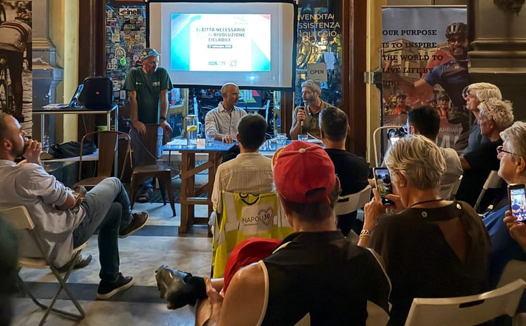 The event at Bicycle House also offered a chance to recognize the long-standing work of Napoli Pedala and its coordinator Luca Simeone, a well-known voice in Campania region for advocating bold and forward-thinking urban mobility policies.